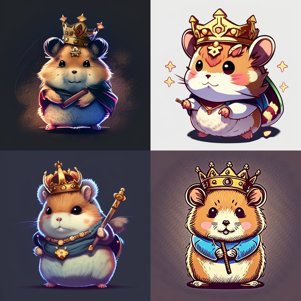 Pour interagir avec, il suffit de taper la commande /imagine suivi de la description de l'image Ici c'est : a hamster king with a crown, manga style ![]()