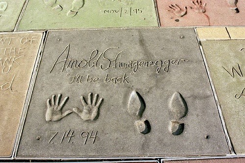 Il ferait bien de mettre un chapeau Schwarzy : le soleil de Californie tape nettement plus fort qu'en Autriche !!!