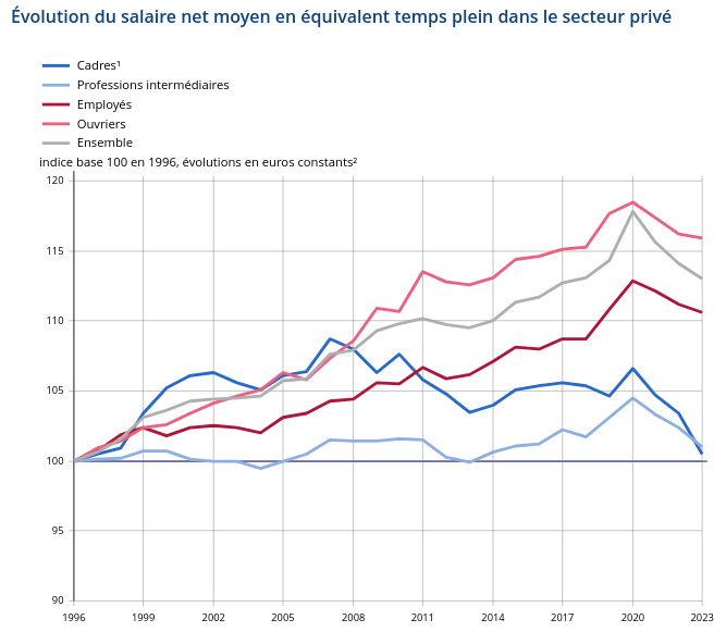 Alors que l'inflation a été de 36% de 1996 à 2024, les salaires eux n'ont pas beaucoup augmentés : ![]()