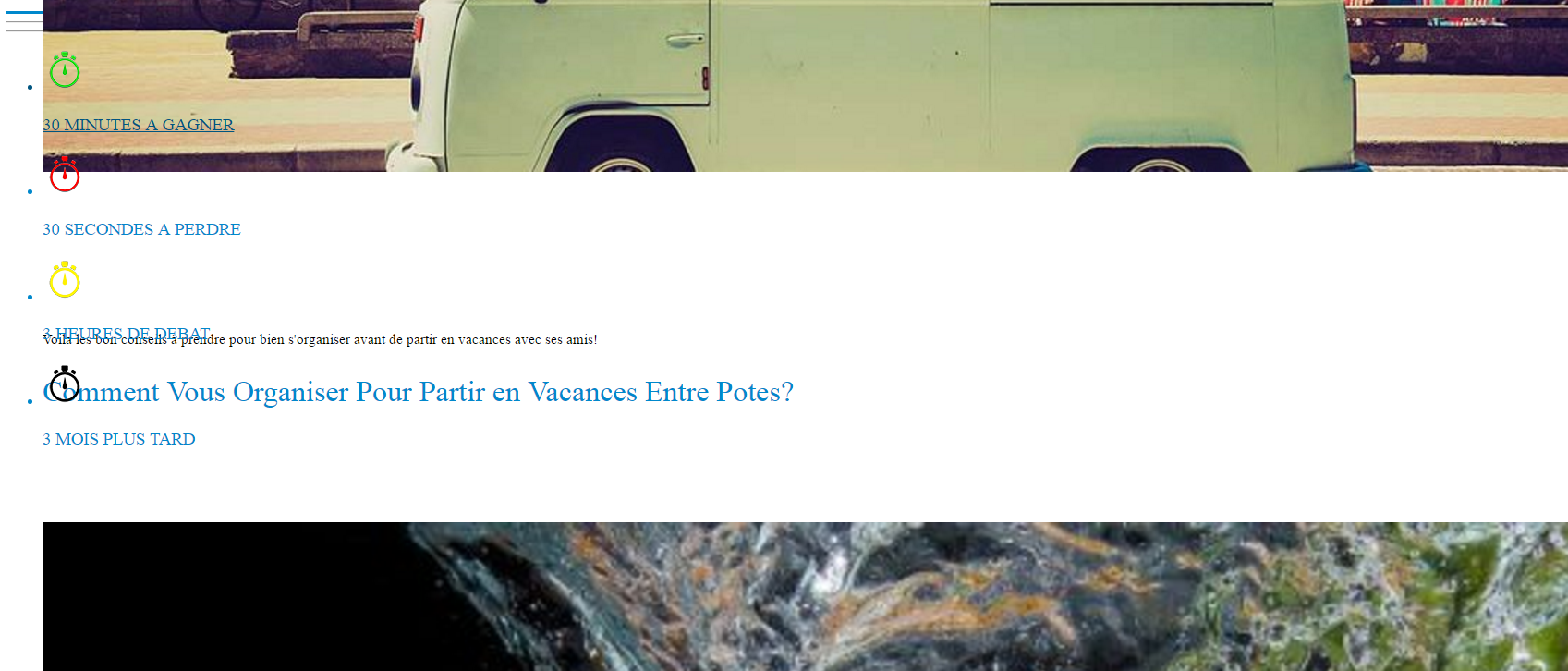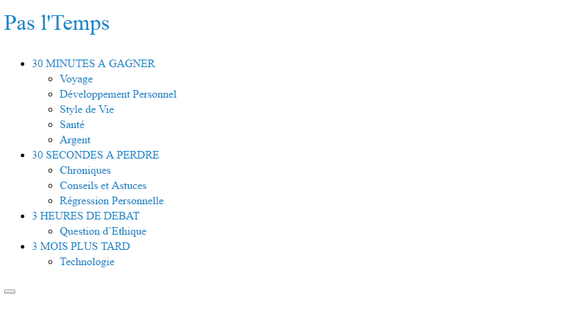 ![]() http://pasltemps.com/ Il y a deux thèmes différents, deux catégories, l'une vous apporte des trucs pour améliorer votre vie, la rendre plus simple, découvrir des choses et l'autre est là pour vous divertir, vous faire passer le temps, toujours avec des articles courts et beaucoup d'humour.