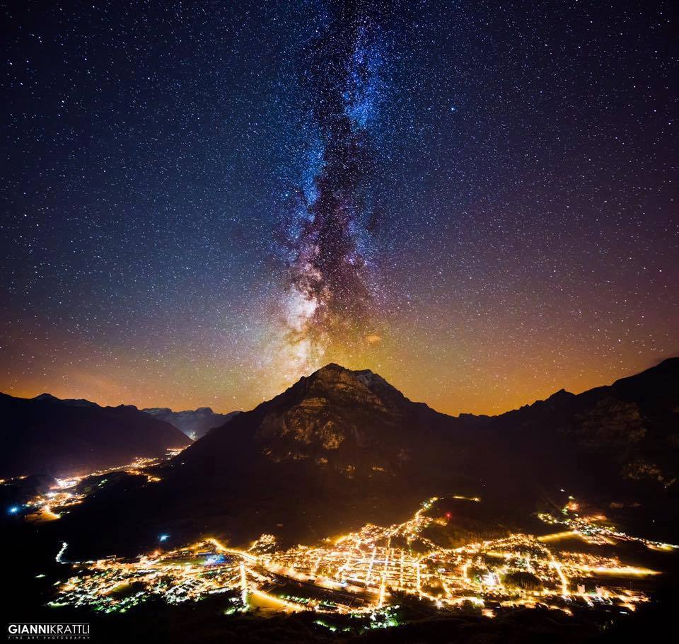 La Voie lactée au-dessus de la ville de Glaris, en Suisse.