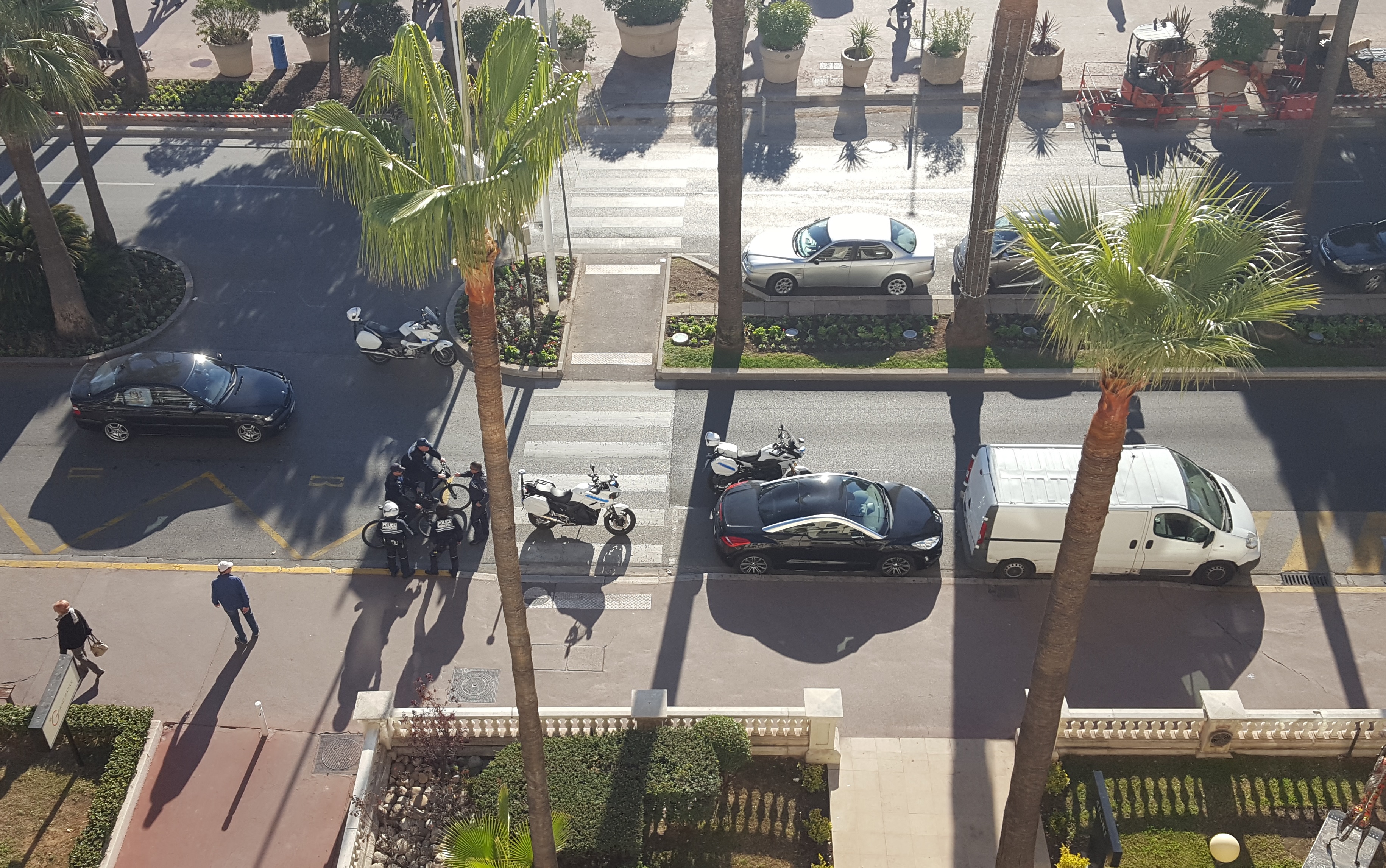 1 moto dans le carrefours 1 moto sur le passage piéton 1 moto en double file et on s'installe sur l’arrêt de bus pour discuter. ![]()