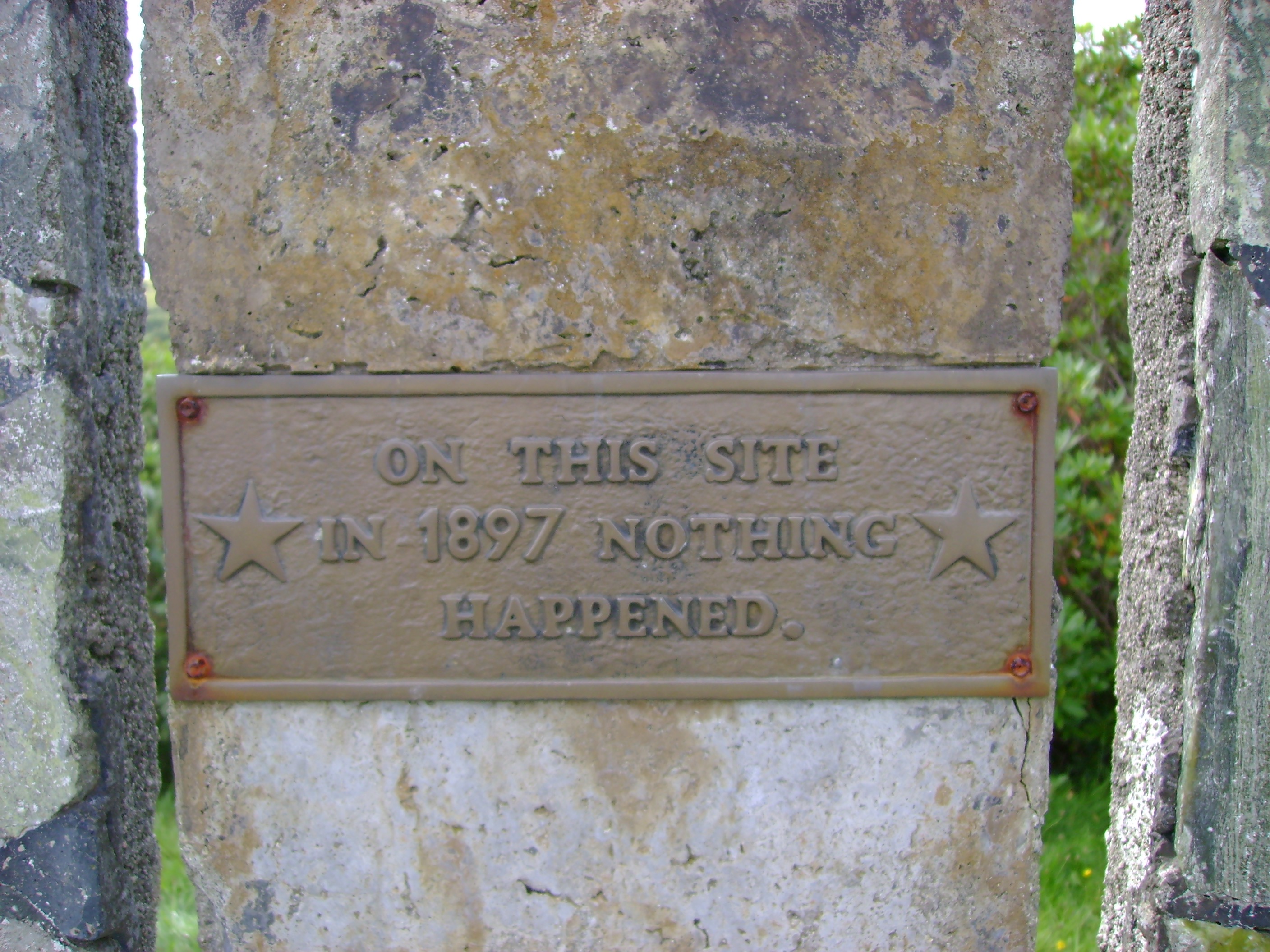 ![]() TRADUCTION (c'est vraiment pour les plus mauvais, hein) : "A cet endroit en 1897, il ne s'est rien passé" ![]()