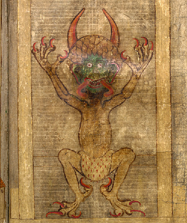 Dans la Bibliothèque Nationale de Suède se trouve un livre unique et légendaire. Haut de 92 cm pour un poids de 75 kg, c’est le plus grand des manuscrits existants. Considéré comme la 8ème merveille du monde durant le moyen-âge, ses dimensions lui valurent le nom de Codex Gigas (livre géant), mais il est également connu sous une appellation plus mystérieuse : la Bible du Diable. Créé au début du XIIIème siècle dans le couvent de Podlazice en Bohême (actuelle république Tchèque), le Codex Gigas est composé de 312 pages de parchemin qui nécessitèrent la peau d’environ 160 bêtes. Il contient différents textes écrits en latin parmi lesquels on peut trouver l’Ancien et le Nouveau Testament, des documents historiques tels que la Chronique de Kosmas, diverses formules incantatoires, ou encore un calendrier nécrologique.