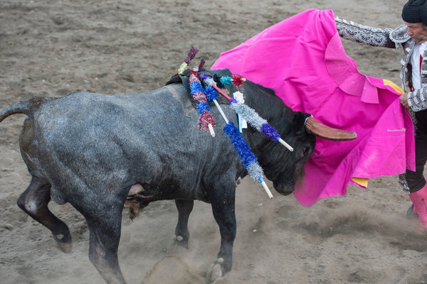 ![]() Corrida sans sang. Aux états unis une corrida utilise un système de Velcro pour ne pas blesser l'animal.