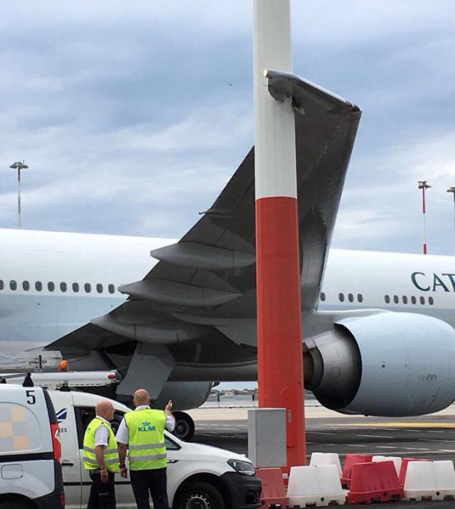 ![]() ![]() Lors du recul d'un Boeing 777-300ER de la compagnie hongkongaise Cathay Pacific Airways.