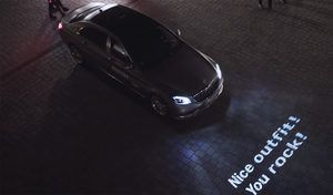 Cette Mercedes surprend les passants en écrivant des messages au sol.