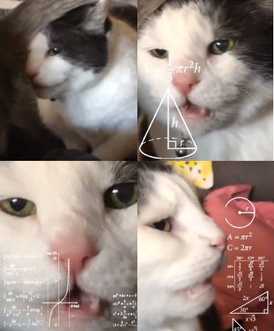 J'pense que le chat qui se fait renifler à manger de l'herbe pour se burger. Après va savoir quelle herbe....