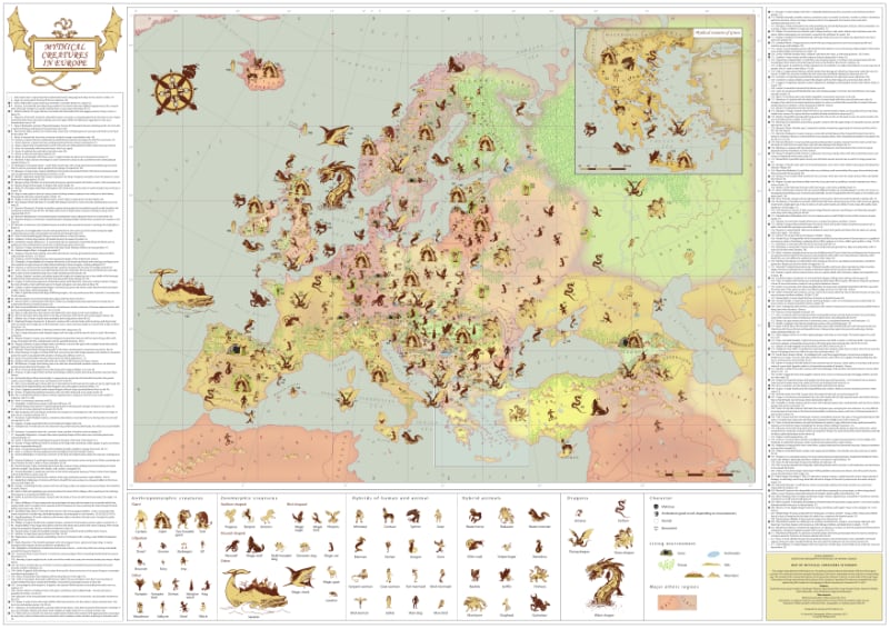 Carte des créatures mythologiques en Europe (Ouvrir dans nouvel onglet pour voir en grand)