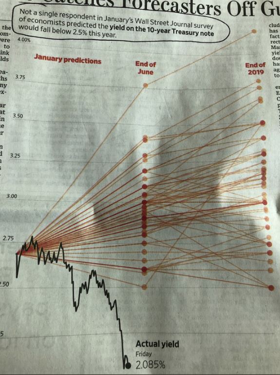 Poisson Pas Frais : ![]() Source - - - - - Prévision économique vs. réalité ![]() Ceci dit ca s'explique, selon un commentaire : Citation : C’est le rendement des bon trésors américains de 10 ans. En gros ces “économistes”on prédit un hausse des taux d’intérêts. Donc grosse croissance.