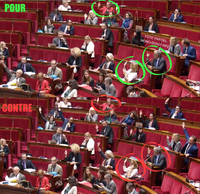 Au moins 3 députés changent d'avis après le premier vote, sous le coup de la pression sociale ou du moutonnage ![]() (regardez-les baisser et relever leur main entre les deux votes)