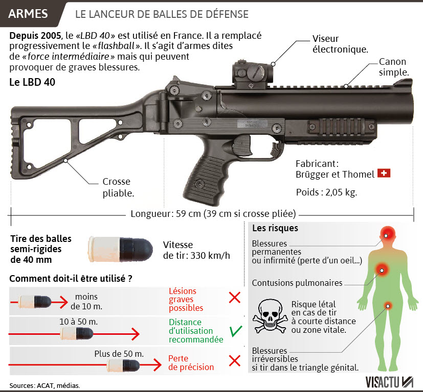C'est de la bonne novlangue de merde car lanceur de balle de défense on pourrait penser à des balles en mousses et à cela : ![]() Alors que c'est cette réalité : ![]()
