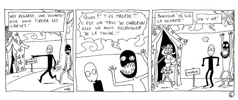 Bonjour à tous, je viens de creer recemment un blog bd où je met un strip par jour ... cela raconte les aventures de white et Black ...