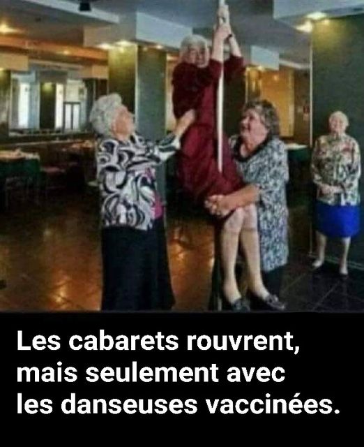 | Je poste trop    Inscrit: 08/01/2005 13:41 Post(s): 15192 Karma: 12563 |  « L’escrime, le sport Covid parfait : - des masques - des gants - on plante quiconque s’approche à moins de deux mètres »