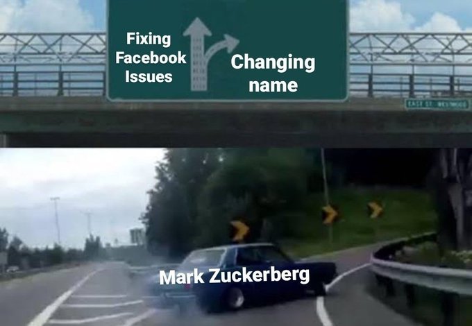 ![]() Soyons de bon compte, c'est la maison-mère qui change de nom. Le réseau social continue de s'appeler Facebook tandis que la société s'appelera désormais Meta. Evidemment, les détournements n'ont pas traîné... : ![]() ![]() ![]()