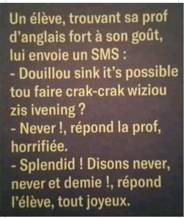 | J'aime glander ici    Inscrit: 16/04/2018 09:02 Post(s): 8006 Karma: 6810 |  "J'ai cru à un sanglier, m'sieur l'agent"