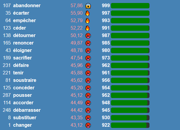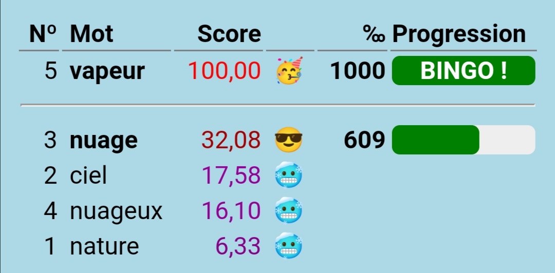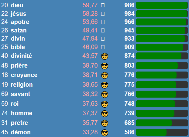 Je suis meilleur dans la version en anglais (https://cemantle.herokuapp.com/) que dans celle en français...