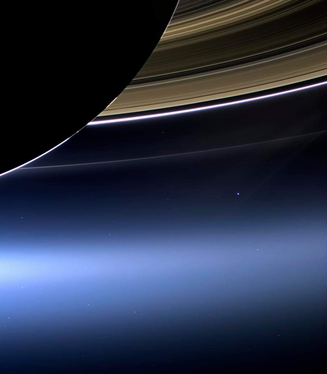 ![]() (Le petit point blanc sous les anneaux) prise par la sonde spatiale Cassini alors qu'elle orbitait autour de Saturne.
