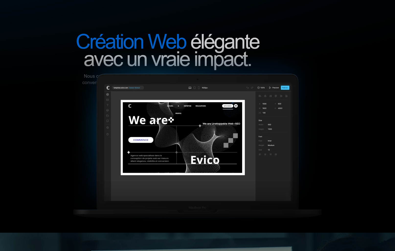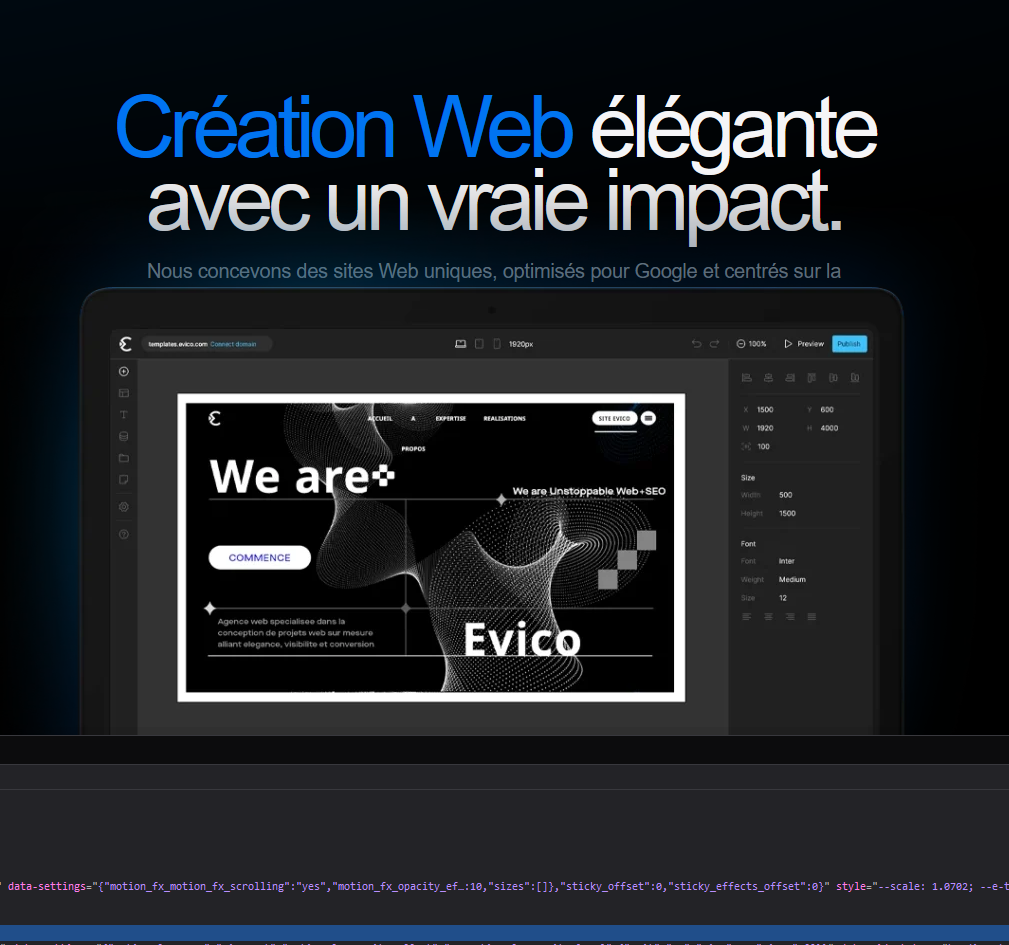 Je suis ravi de partager avec vous mon site récemment créé avec WordPress et Elementor. J'ai accordé une attention particulière à l'expérience utilisateur (UX) tout en y intégrant une charte graphique moderne et élégante. Je suis très curieux de connaître vos avis et retours sur mon travail. https://evico.fr J'attends vos retours avec impatience ! Merci d'avance pour vos précieux commentaires.:)))
