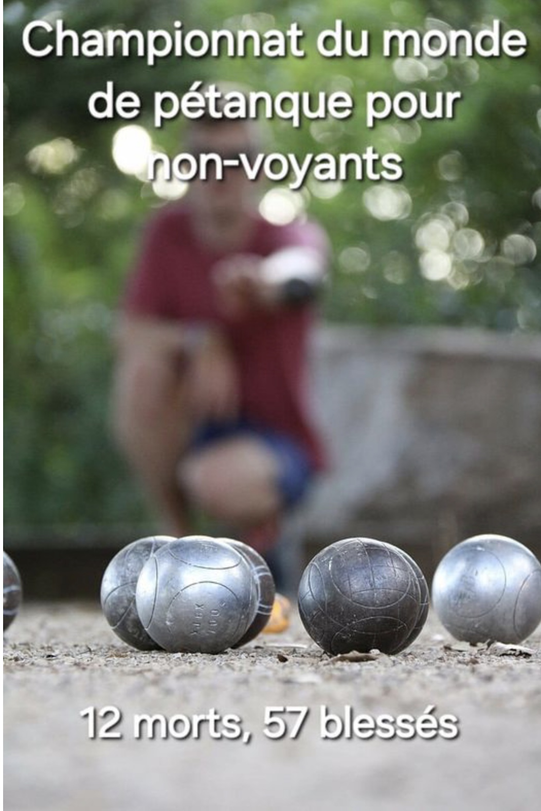 Je viens d'apprendre qu'il y a de la pétanque pour aveugle... Aux Jeux Paralympiques ! ça s'appelle La Boccia... ![]()