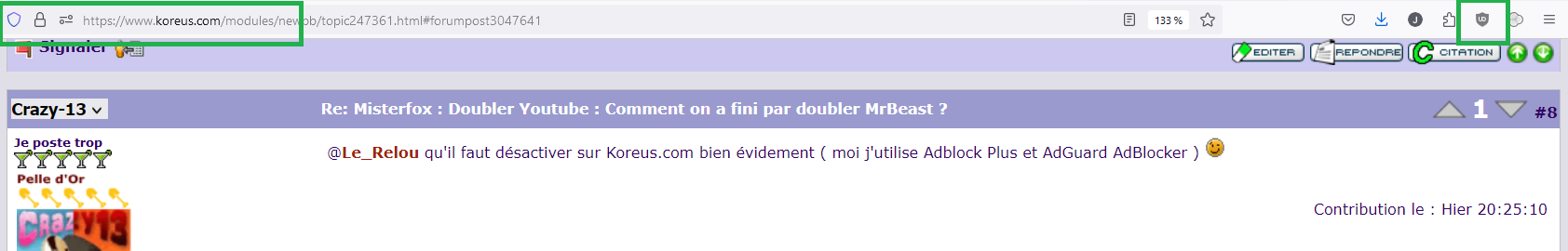 @Le_Relou qu'il faut désactiver sur Koreus.com bien évidement ( moi j'utilise Adblock Plus et AdGuard AdBlocker )