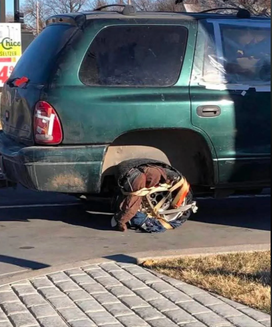 Roue de secours improvisée