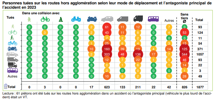 Les chiffres du tableau d'Altis me font sourire (jaune) : la première cause de mortalité (45%) des cyclistes est "sans tiers". Ce qui signifie que la moitié du temps il se tue tout seul...