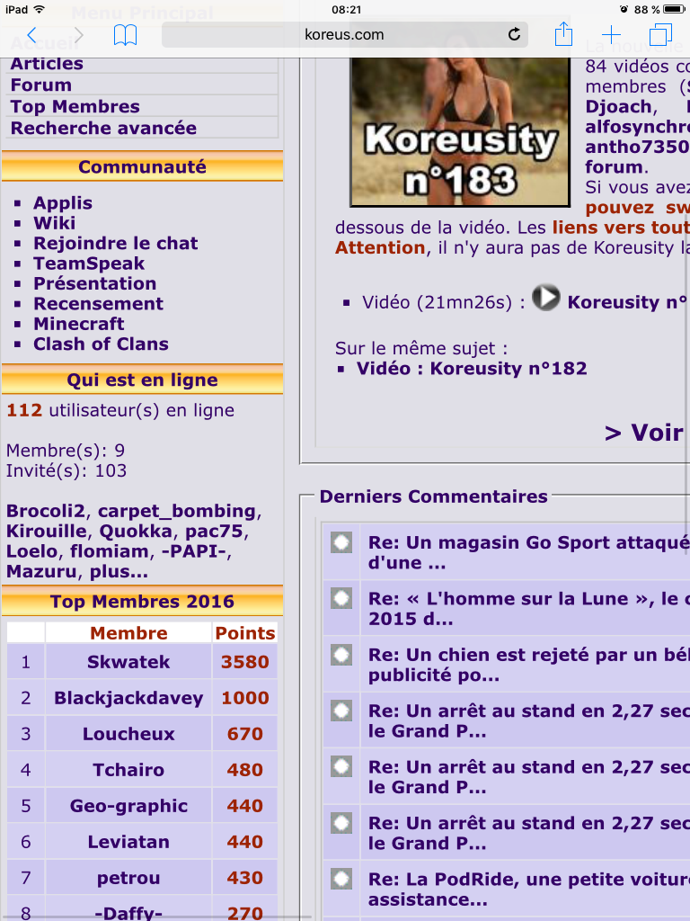 Pas de problème ! Mais avec 9 membres, tu marques même 2 points ^^ Je corrige ![]() Et PPG tant que je suis dans le coin ^^' -does- : 52 points Poum45 : 42 points ☆ ☆ ☆ WTHellias : 37 points Nyark_Nyark : 36 points Olfix : 26 points Quokka : 18 points petrou : 12 points Insert : 6 points TrChSl : 5 points Tchairo : 2 points