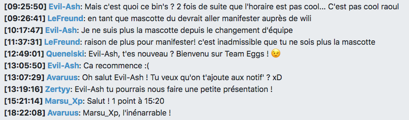 Allez je résiste pas de vous transmettre un extrait du chat Team Eggs Bleu :