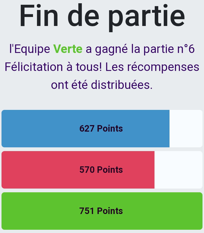 - 06 : [07/10/18 -> 19/10/18] Verts 750 - 05 : [07/09/18 -> 01/10/18] Bleus 1500 points - 04 : [01/09/18 -> 04/09/18] Bleus 200 points - 03 : [24/08/18 -> 31/08/18] Rouges 400 points - 02 : [26/07/18 -> 18/08/18] Bleus 1000 points - 01 : [12/07/18 -> 23/07/18] Bleus 200 points