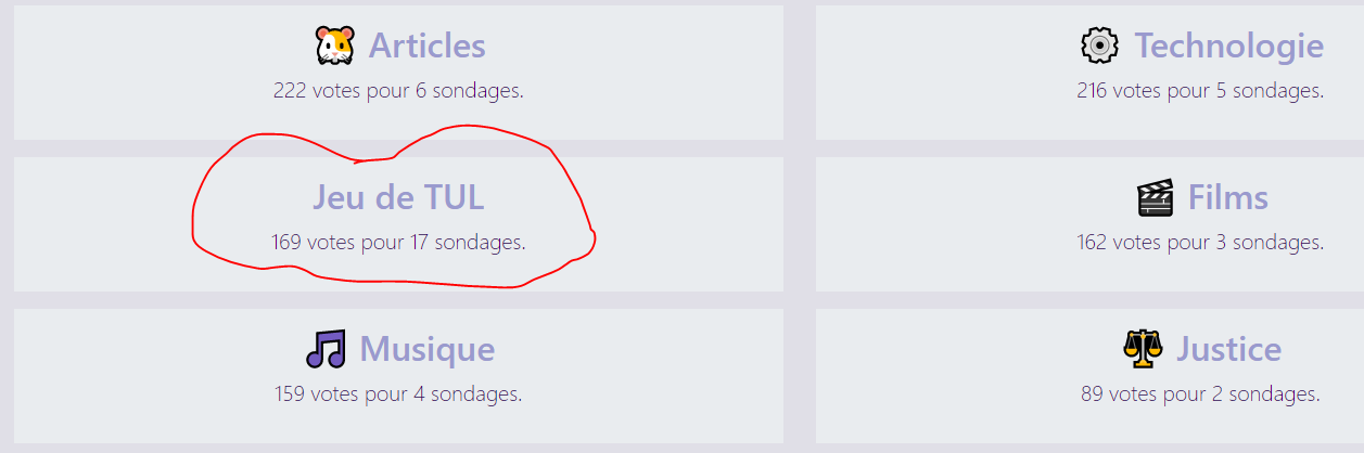 @Mitri : Dans les catégories, pas de souci, mais je parlais de la catégorie quand tu crées un nouveau sondage.