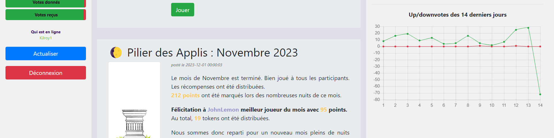 | La loi c'est moi    Inscrit: 07/04/2012 19:19 Post(s): 39523 Karma: 20068 |  Chers @Ko-citizens, cela fait un an que le jeu est sorti ! Quelques stats parce que c'est toujours sympa! Tiers 1 rajoutés: 35 103 Tiers 2 rajoutés: 8 854 Tiers 3 rajoutés: 3 620 Tiers 4 rajoutés: 1 217 Tiers 5 rajoutés: 164 Tiers 6 rajoutés: 93 Succès débloqués: 2 272 Pour fêter les 1 an: Bonus x3 pendant une semaine! Profitez-en bien