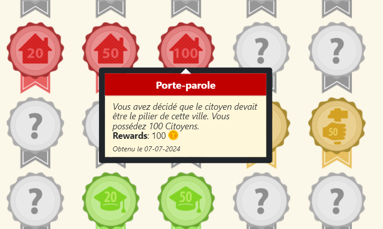 J'ai 100 citoyens et je suppose qu'il va falloir monter à 250 puis 500(en regardant dans les succès) + à refaire pour les 10 autres restants... On en a pour 5 ans avant de finir le jeu