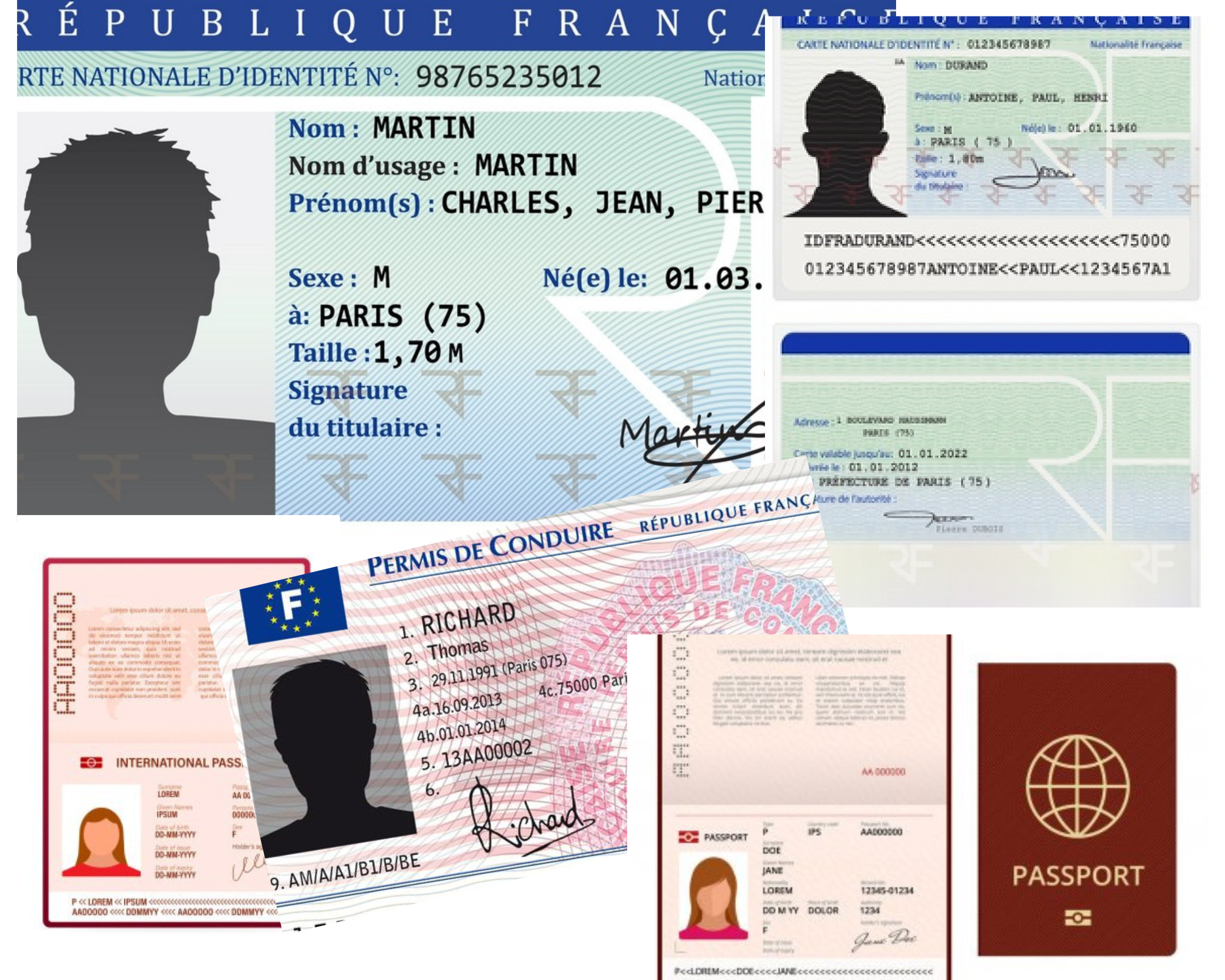 Papiers personnels Réunir des papiers Abattre ses cartes (Re)tirer le portrait à visage (dé)couvert être un illustre inconnu Jouer cartes sur table faire un exemple traiter de tous les noms "Gendarmerie Nationale, vos papiers s'il vous plait!" afficher la couleur Monsieur ou Madame-tout-le-monde se taper l'affiche Un garçon manqué Il y a une ombre au tableau Passer comme une ombre Indice: il manque qqc