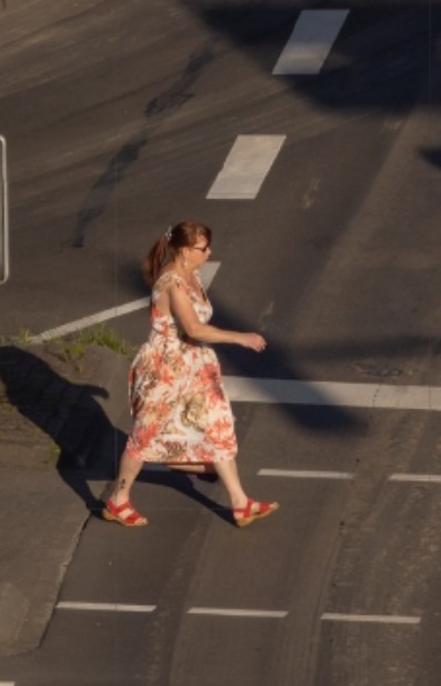 Un robot tondeuse Une grande grue à tour Un fourgon marron 2 mecs avec le même T-shirt Une femme avec des sandales rouge Horloge indiquant 18h13 Un drapeau de pirate Le magasin NKD