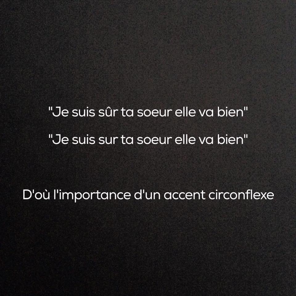 "Je suis sur, ta soeur elle va bien" "Je suis sur ta soeur, elle va bien"