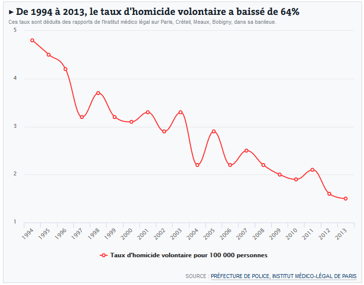 Dans cette article du monde on trouve un graphique intéressant sur le taux d'homicides sur 20 ans autour de Paris :