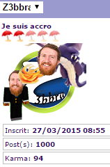 La pavé et le temps que tu as du mettre pour faire la vidéo ![]() Tout comme moi récemment, tu as franchi un cap ! On arrive chez les grands ! ![]() Une petite voix dans ma tête me rappelle d'ailleurs: "hey bâtard, tu vois, au moins lui, il a fait sa dédicasse des 1000 !"
