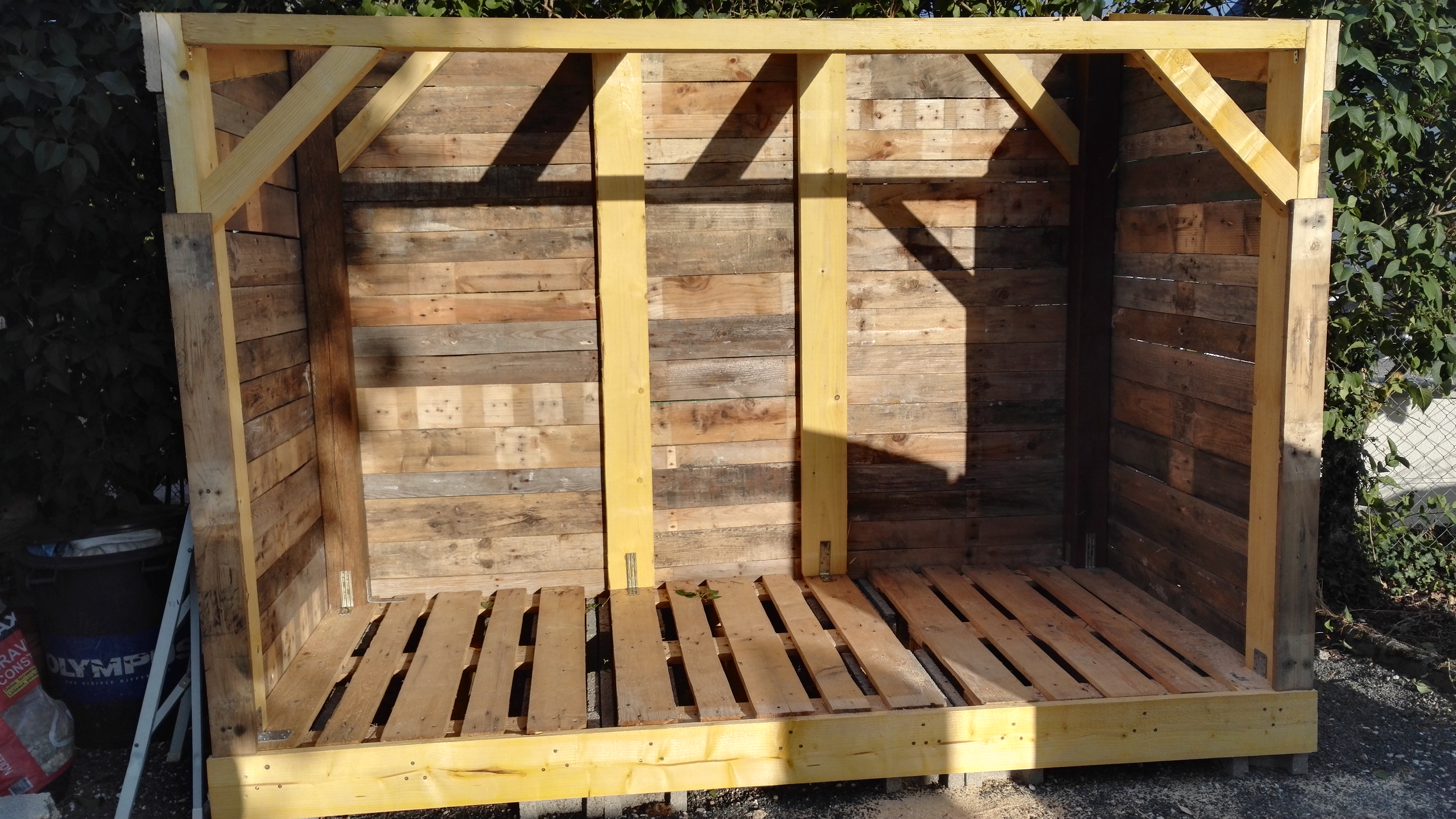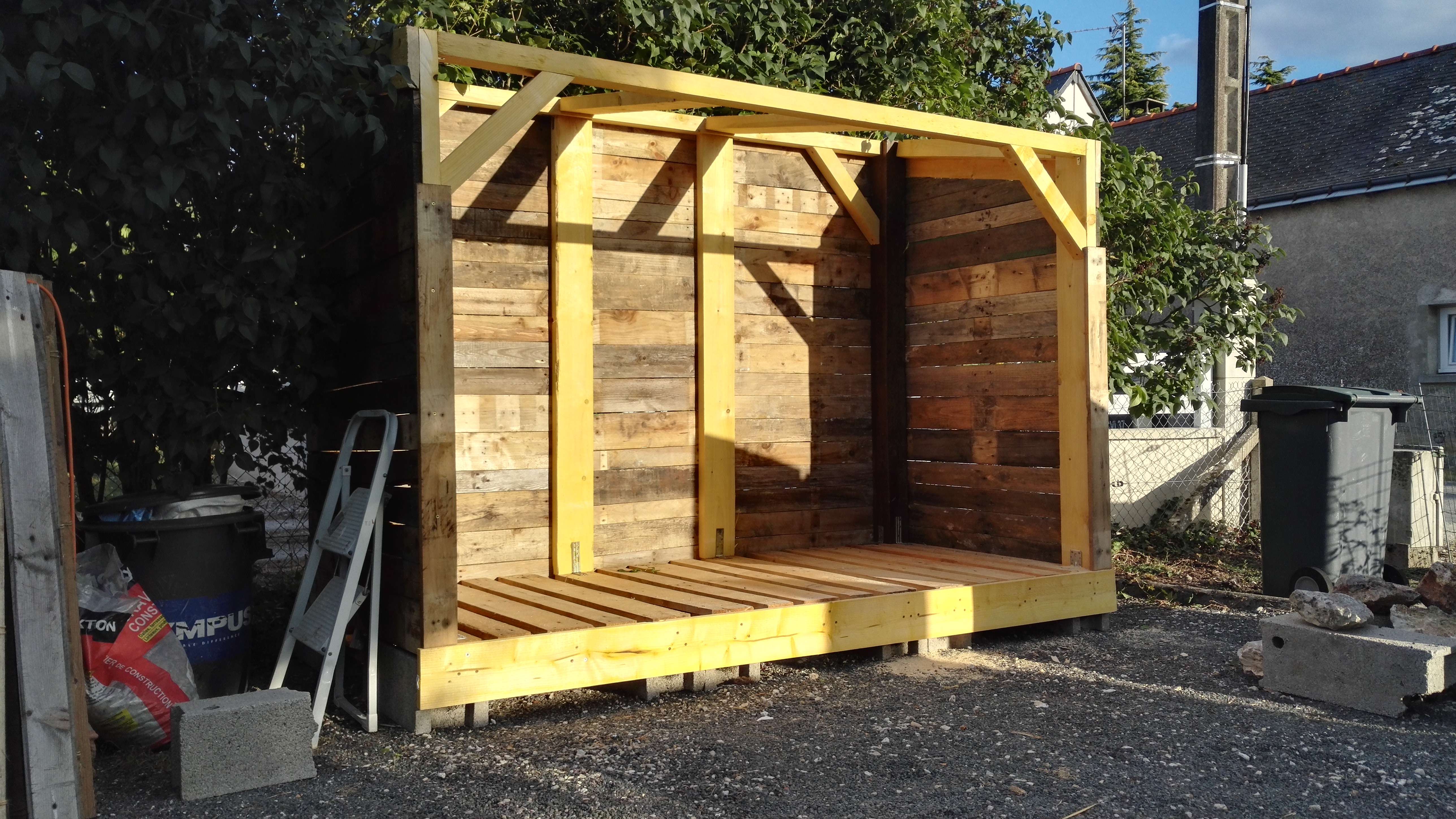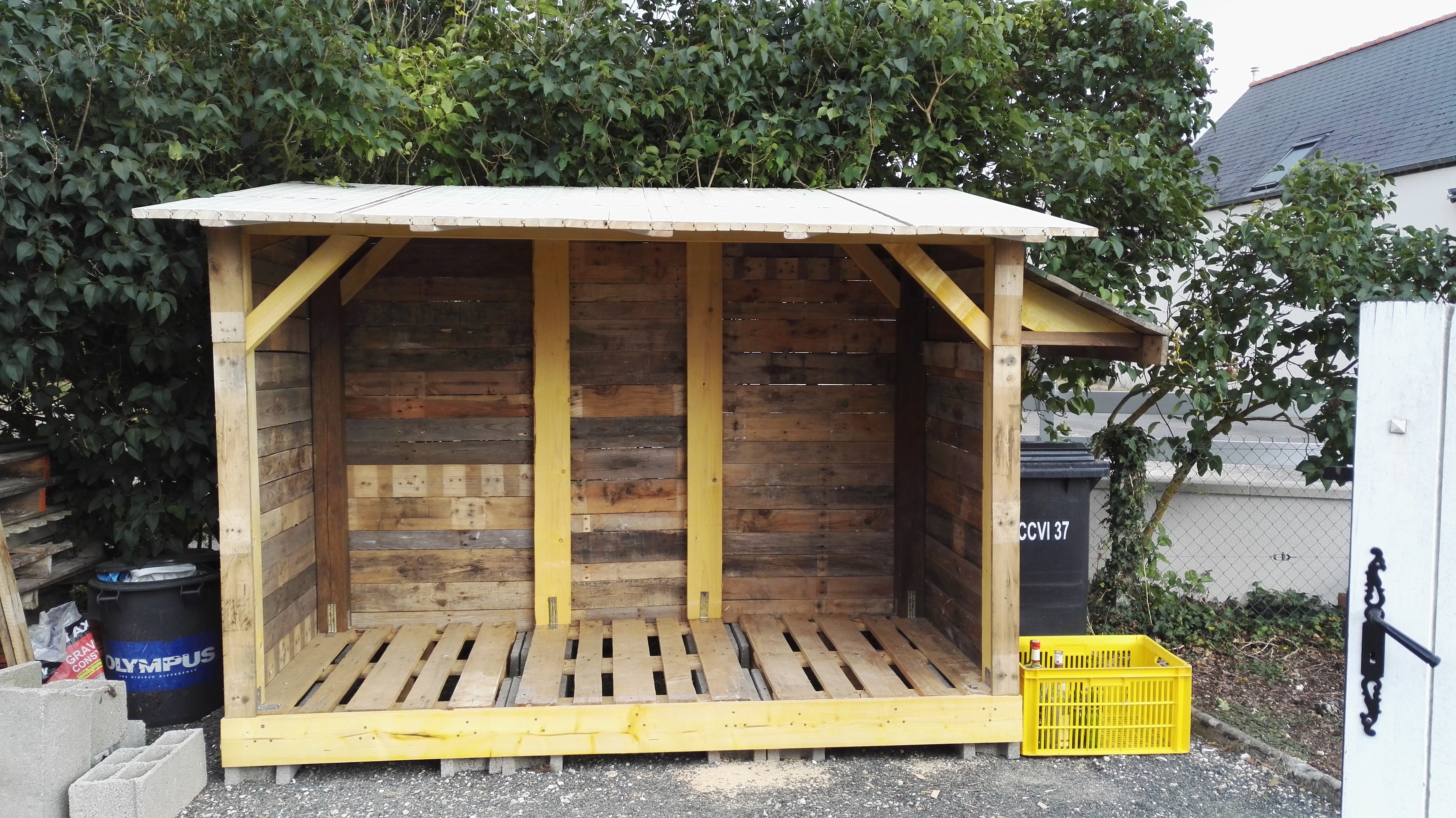 T'es sur d'avoir mis 5 stères dedans ? Ça me parait contenir 3 ou 4 stères si je me repère à la dimension de la poubelle. En tout cas, pas con l'idée des volets transformés en toit ! Le rendu final à de la gueule aussi, bien joué ![]()
