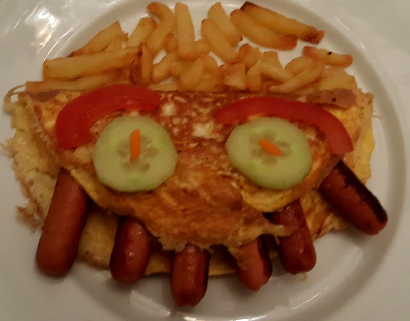 Perso, je suis fan absolu de leur cuisine. Il doit me rester encore des épices pour Shish taouk. Ok, en sachet L'autre soir, je me suis amusé pour ma fille : omelette au fromage Halloween ![]()
