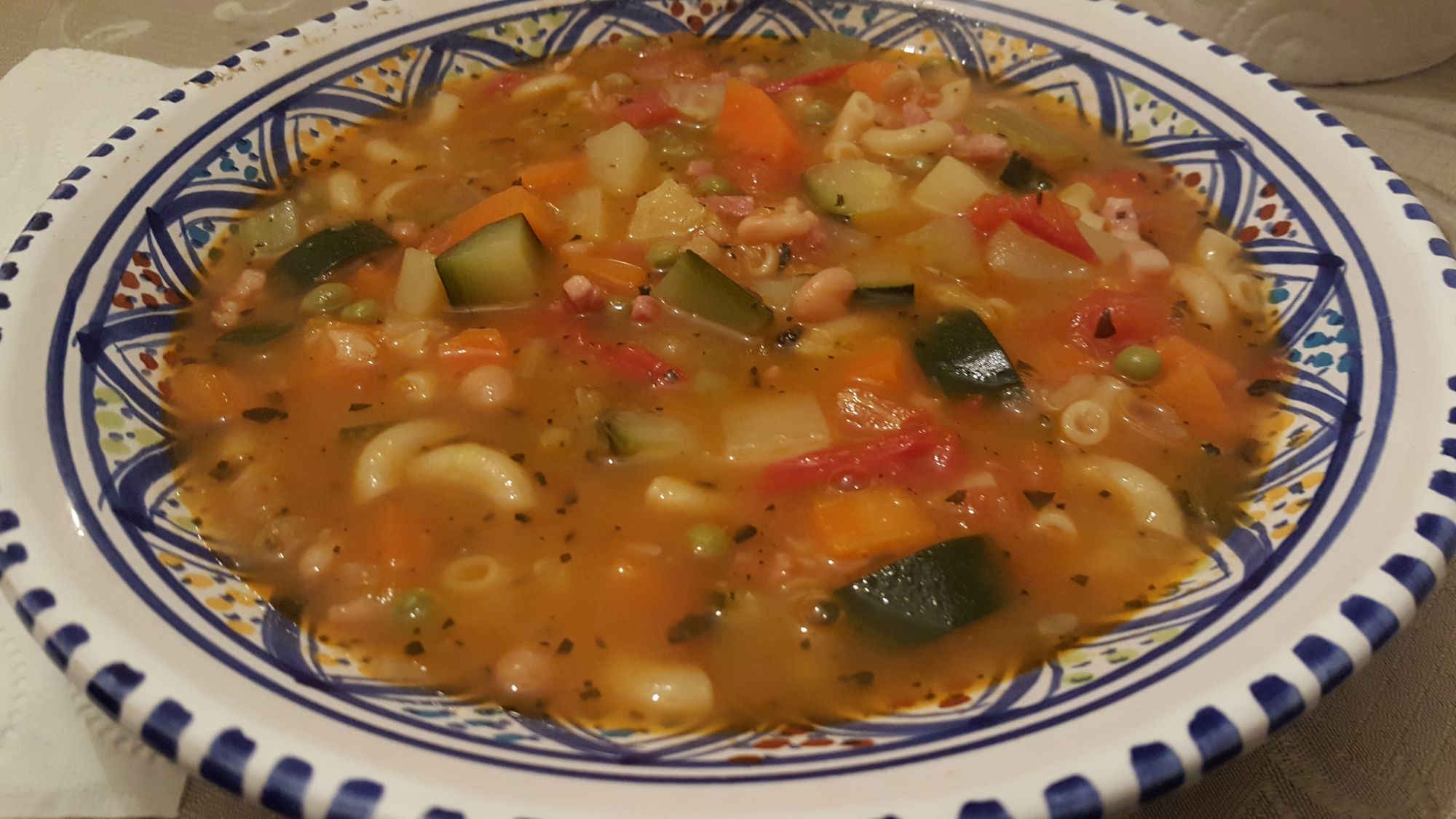 je touche du bois, je n'arrive pas à me souvenir la dernière fois que j'ai été hospitalisé. Gamin peut-être, mais si ça devait m'arriver, je demande à madame de m'apporter de quoi manger en douce ![]() Allez, en attendant, vous m'avez donné faim avec vos soupes & co et j'ai eu une idée / envie... ... Me préparer un Minestrone :coeur: Purée, c'est du boulot (du temps) faire gaffe aux différentes cuissons de légumes mais quelle tuerie:-o ![]() Là, c'était : lardons, oignons, poireaux, tomates, céleri branche, carotte, courgette, pomme de terre, petits pois, haricots blancs, basilic, pâtes (j'avais mis des coquillettes) et parmesan. Le plus chiant étant de tout couper en petit dès. On était trois dessus mais ça passait pour dix ![]() Puis, en dessert, une simple / bête mangue mais bien mûre ![]() Aussi, j'adore la technique qu'on voit dans les restaurants asiatiques pour présenter ce fruit. Je l'ai adopté ^^ ![]()