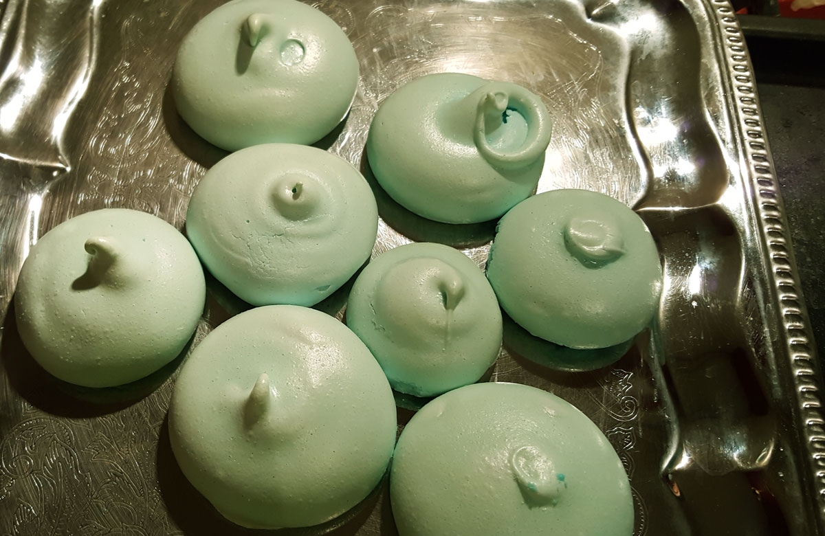 Elles ont une belle gueule ! J'aurais mis un peu plus de colorant ^^ Celle à l’extrême gauche (non politique ) est juste magnifique (le petit retour au dessus bien centré, j'adore) et les autres tout aussi réussi, chapeau mesdames ! ![]() Une bonne meringue doit être dure à l'extérieur et au centre légèrement moelleuse , est ce le cas ?