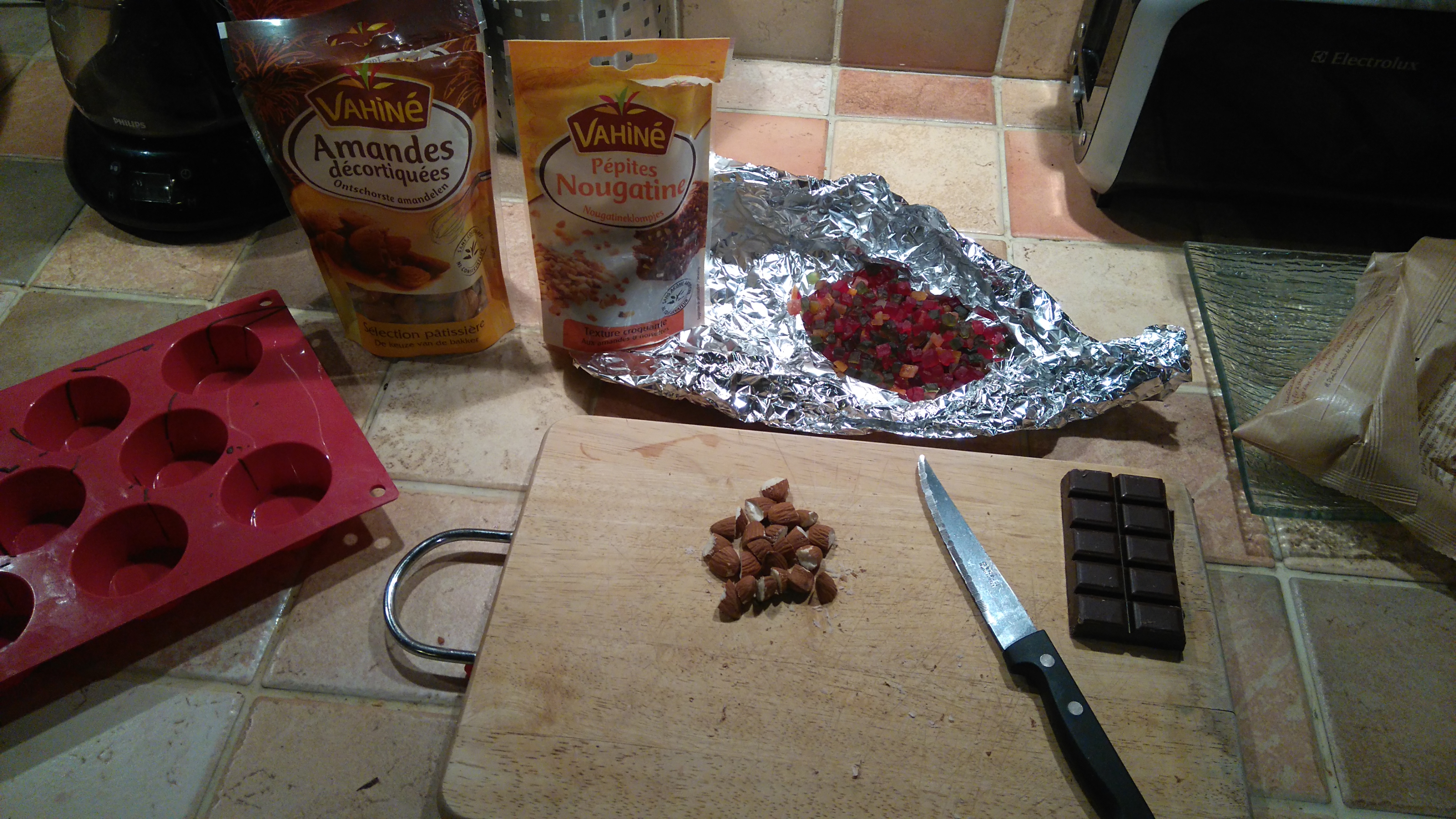 Tout dépend de ton four et de la grosseur de tes meringues ![]() Et l'écart de t° fait aussi la différence ![]() Bon sinon ce soir c'est Zertyy qui a cuisiné ! Velouté de laitue (du jardin du beau père), recette toute simple et le résultat est juste une tuerie en bouche : Préparation des ingrédients ![]() La cuisson ![]() Après un petit passage au Blender, la dégustation ![]() En dessert, utilisation du chocolat noir qui reste, acheté au salon du Chocolat de cette année : Fondre au bain marie ![]() Utilisation de moules à Muffins (remplir que le fond) ![]() La garnitures (amandes coupées en 2, fruits confits, mélange craquant)à déposer dans les moules en tapotant un peu pour bien incorporer dans le chocolat, avant la mise au frigo 10 minutes ![]() Le résultat qui a ravi toute la famille et ma grande gueule ![]() ![]()