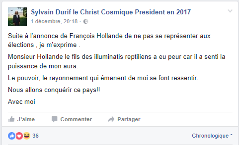 Le Christ Cosmique Sylvain Durif se présente aux élections présidentielles de 2017