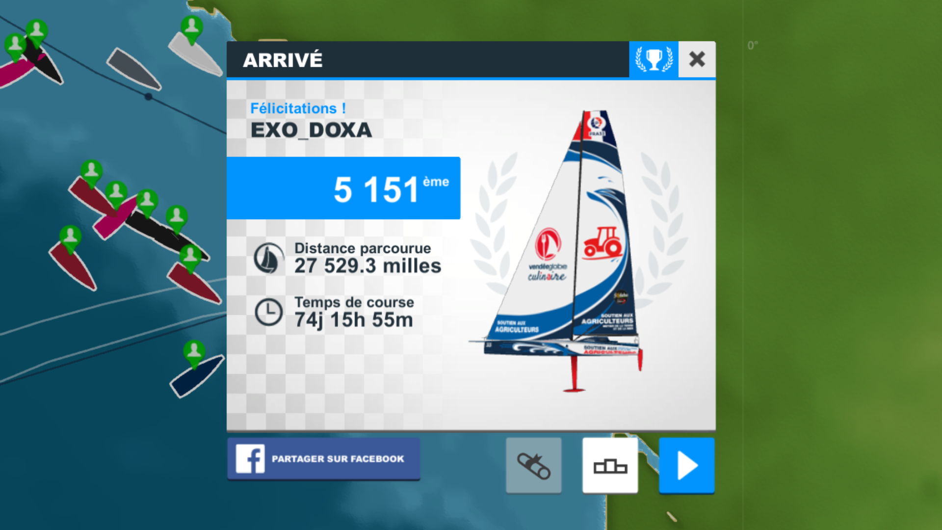 Juste pas dans les 4000, mais je vais pas me plaindre vu que j'étais à côté de bateaux qui avaient entre 2 et 4 jours d'avance sur moi juste après la descente (dont la plupart avaient des options).