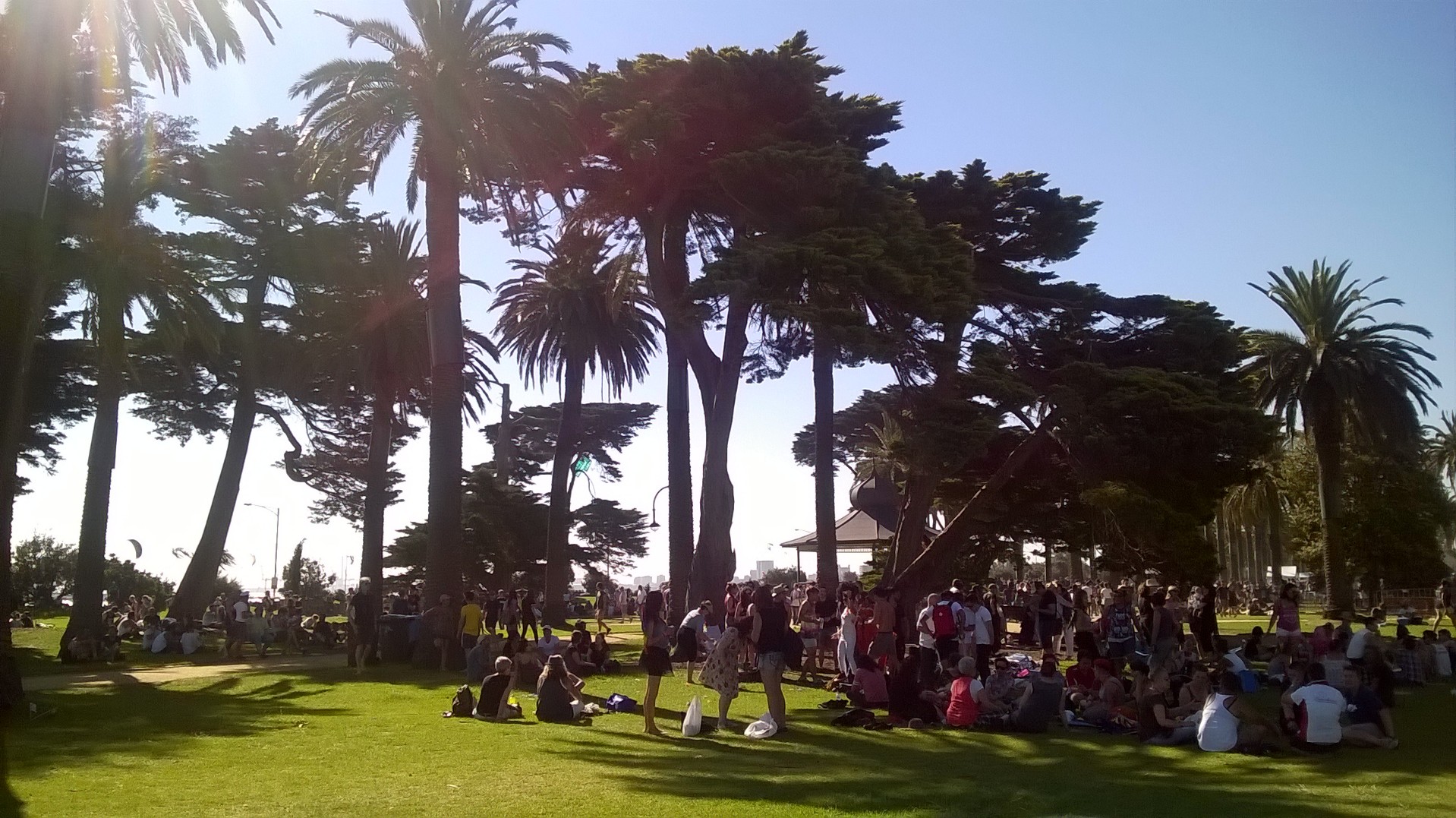 J allais au tram donc j en ai profite pour passer par Little Bourke St (la rue du quartier chinois, celebration de leur nouvel an). ![]() Ensuite, arrivee a ma destination (Albert Park mais le petit, pas le grand !), j en ai profite pour passer par les "petites rues" (ca existe pas vraiment les petites rues ici, haha, c est les passages qui sont petits en gros) ![]() J ai rejoins le bord de mer au niveau de South Melbourne Beach. ![]() puis j ai longe, en faisant un detour par Albert Park (le grand cette fois) avant d aller droit sur St Kilda que j ai traverse pour rejoindre St Kilda Beach. Il y avait, je n etais pas au courant, le Midsumma festival (lgbt, bein voyons !) (ou j ai vu, mais elle ne m a pas vu, une meuf qui travaille dans le meme "complexe" que moi et que j ai surpris plusieurs fois a me regarder... now I know for sure ) (j etais deja tombee sur ce festoche par hasard au Alexandra Garden, je dois etre aimantee)![]() Puis mon pote anglais m a rejoint, on s est posey avec deux bouteilles de vin comme des pochtrons avant de finir sur les rochers de la jetee, coucher de soleil toussa ![]() Puis on est alles voir les ping...manchots ! Y en avait partout et ils sont bien proteges par les benevoles et les gens sont respectueux ![]() Je dois dire que j ai aime ma journee d hier parti a 13h, ma ballade a dure jusqu a genre 19h quand meme avant l apero. J ai decouvert ici que j adorais me promener.