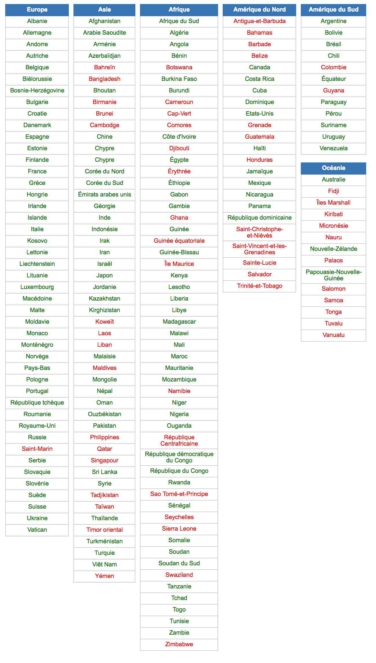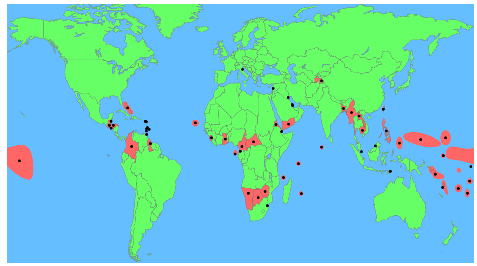 Autant oublier la Jamaïque ou la Bolivie c'est couillon, mais certains comme le Timor oriental ou le Swaziland me seraient jamais venus à l'esprit.