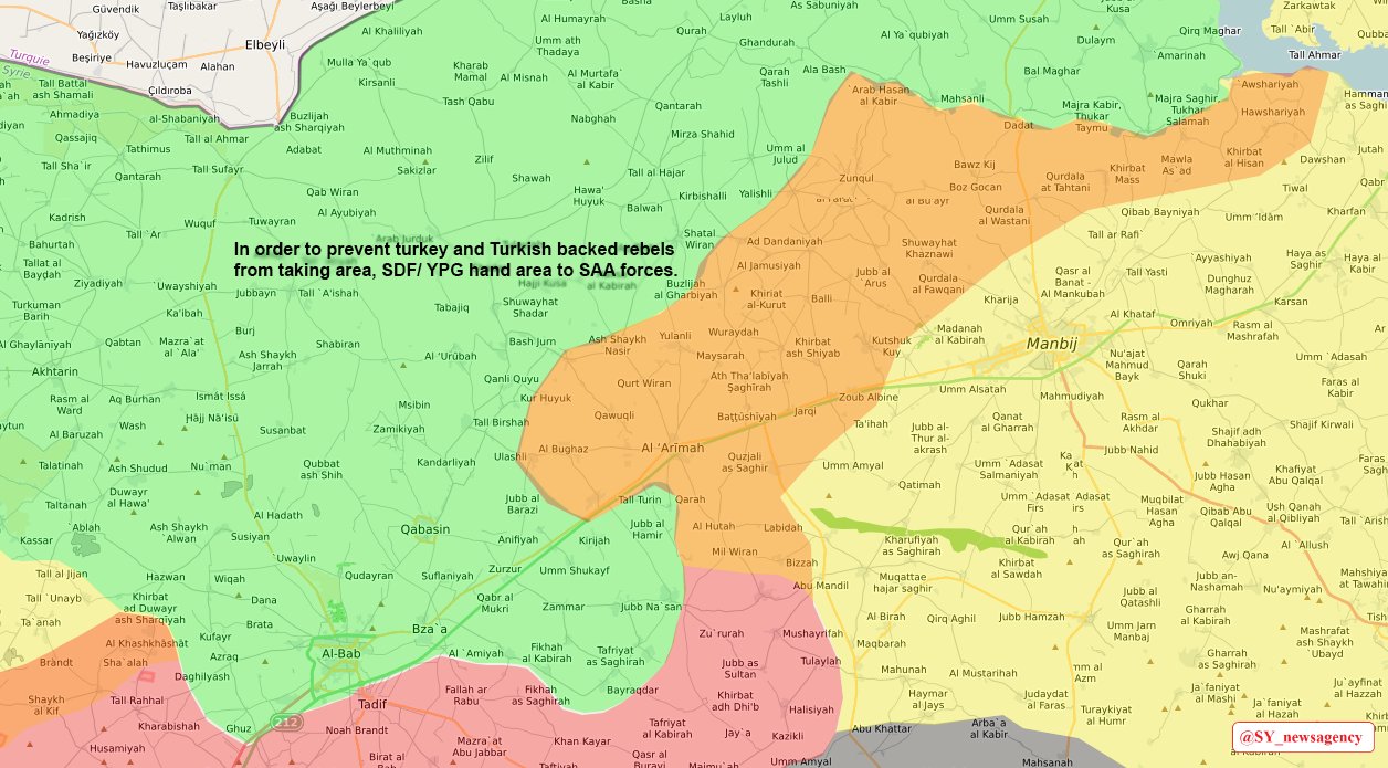 Concernant l'intention Syrienne, je pense que dans l'immédiat elle se concentre la dessus : éviter que le FSA + Turquie n'atteignent la ville d'al-Khafsa : c'est en effet qu'ici que se trouve la station de pompage d'eau qui approvisionne tout Alep en eau, et cette ville se trouve direction Manbij. Sachant qu'une bonne partie des rebelles sunnites et leur famille ont été évacués d'Alep, et qu'en échange des villages shiites encerclés par les rebelles sunnites ont été déplacés à Alep, les rebels ne devraient pas trop avoir de mal à bloquer cette station de pompage si ils l'atteignent... Je pense donc que la priorité syrienne est cette station avant tout ![]()