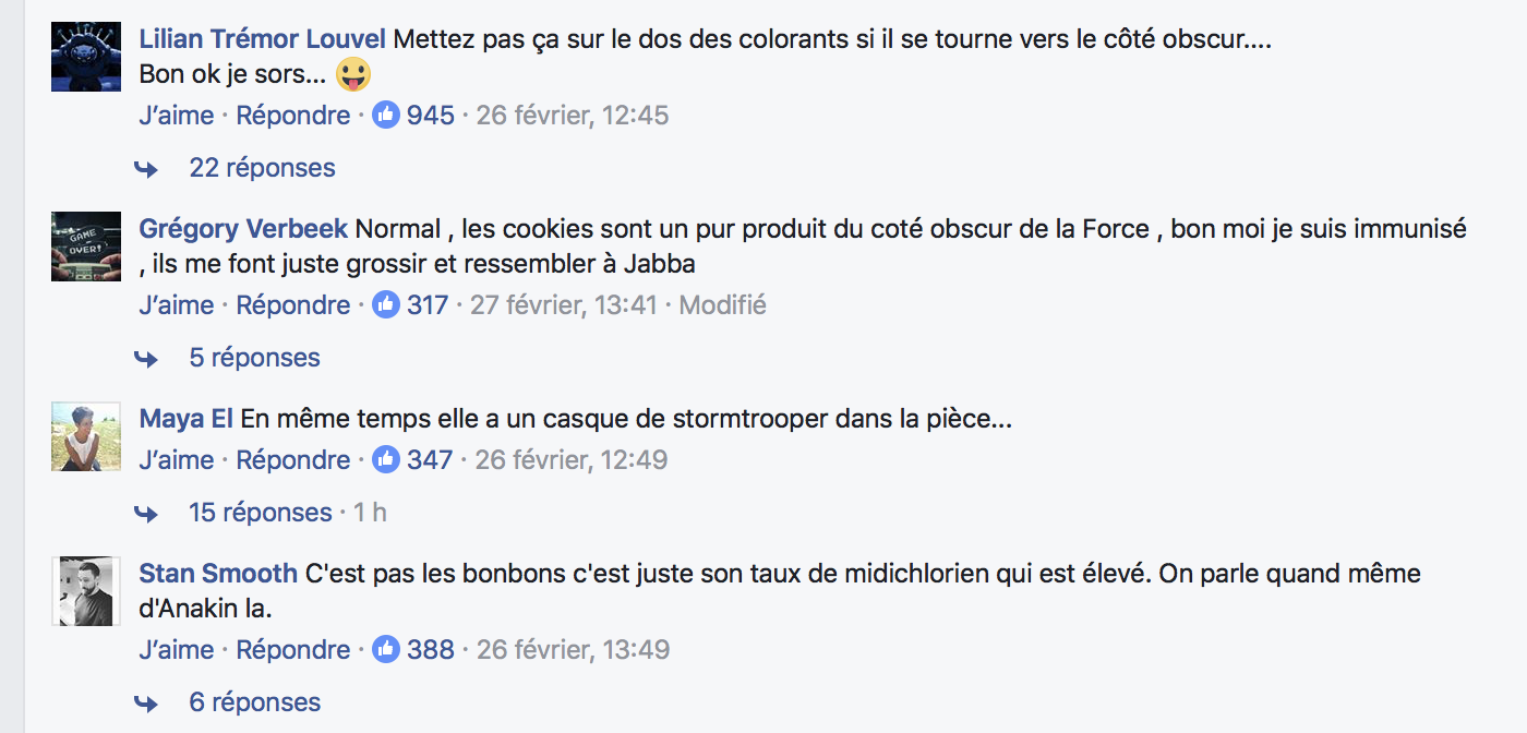 je trouve ça un peu lourd comme humour, le fait qu'elle ai nommé son fils Anakin est déjà "drôle".