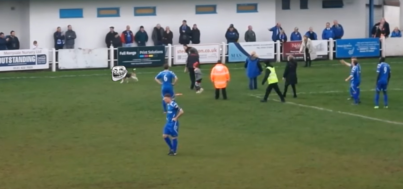 Durant un match de la ligue 1 d'Irlande du nord le 1er avril dernier un chien à interrompu la rencontre pendant de longue minutes.